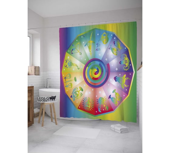 Штора (занавеска) для ванной JoyArty "Красочные символы" из сатена, 180х200 см с крючками, sc_33736