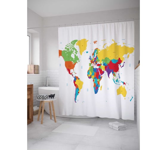 Сопутствующие товары для шторки-занавески JOYARTY Красочные страны из сатена, 180х200 см с крючками