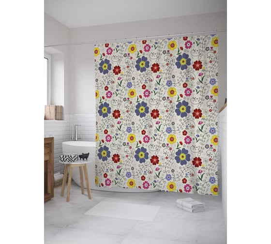 Сопутствующие товары для шторки-занавески JOYARTY Красочные цветочные композиции из сатена, 180х200 см с крючками