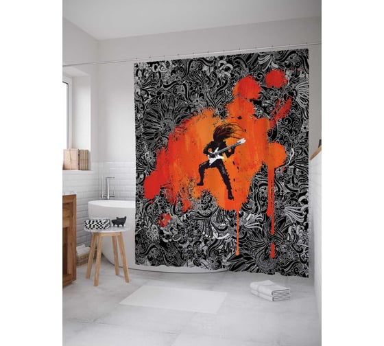 Штора (занавеска) для ванной JoyArty "Красочный гитарист" из сатена, 180х200 см с крючками, sc_23085