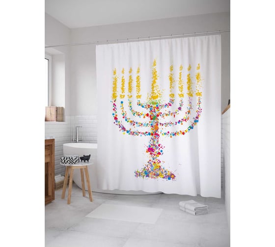 Штора (занавеска) для ванной JoyArty "Красочный подсвечник" из сатена, 180х200 см с крючками, sc_5863