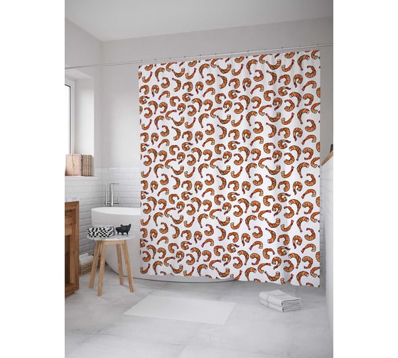 Штора (занавеска) для ванной JoyArty "Креветочные рогалики" из сатена, 180х200 см с крючками, sc_164361