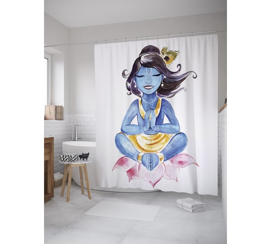 Штора (занавеска) для ванной JoyArty "Кришна-джанмаштами" из сатена, 180х200 см с крючками, sc_60646