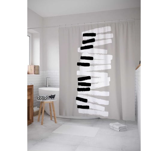 Штора (занавеска) для ванной JoyArty "Кривые клавиши" из сатена, 180х200 см с крючками, sc_58877