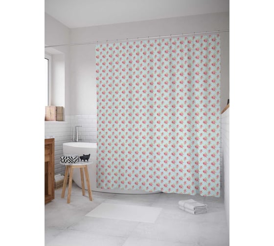 Штора (занавеска) для ванной JoyArty "Крошечные цветочные букеты на голубом фоне" из сатена, 180х200 см с крючками, sc_258467