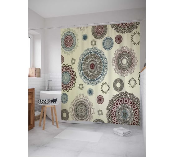Штора (занавеска) для ванной JoyArty "Круги с узорами" из сатена, 180х200 см с крючками, sc_13523