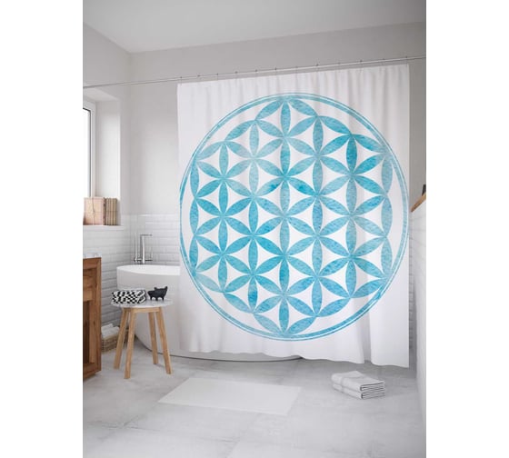 Штора (занавеска) для ванной JoyArty "Круглая цветочная решетка" из сатена, 180х200 см с крючками, sc_19505