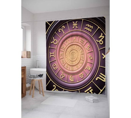 Штора (занавеска) для ванной JoyArty "Круговорот зодиаков" из сатена, 180х200 см с крючками, sc_33738