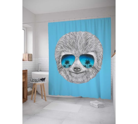 Штора (занавеска) для ванной JoyArty "Крутой ленивец" из сатена, 180х200 см с крючками, sc_37855