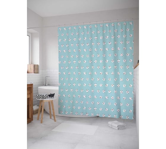 Штора (занавеска) для ванной JoyArty "Кружки на кругах" из сатена, 180х200 см с крючками, sc_28974