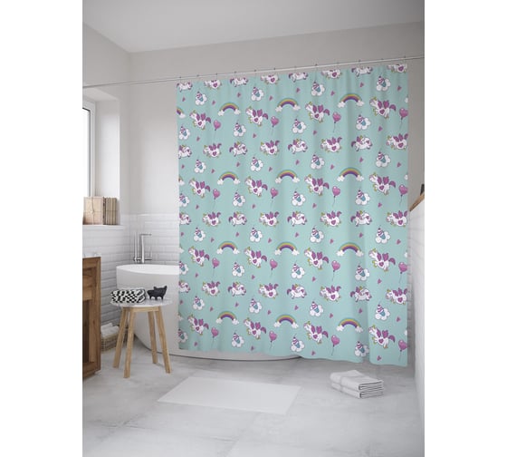 Сопутствующие товары для шторки-занавески JOYARTY Крылатый единорог из сатена, 180х200 см с крючками