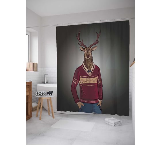 Штора (занавеска) для ванной JoyArty "Культурный олень" из сатена, 180х200 см с крючками, sc_28196
