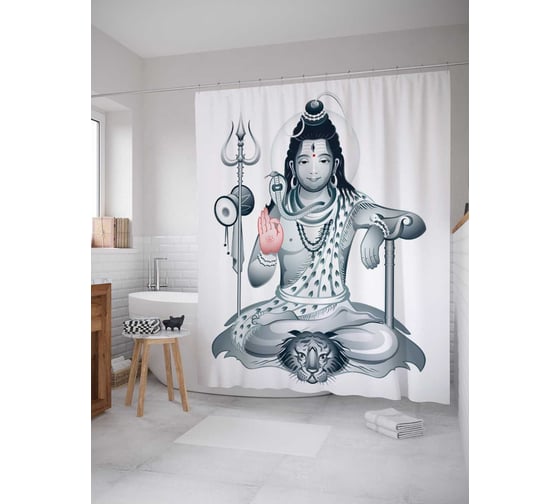 Штора (занавеска) для ванной JoyArty "Кумари приветствует" из сатена, 180х200 см с крючками, sc_19252