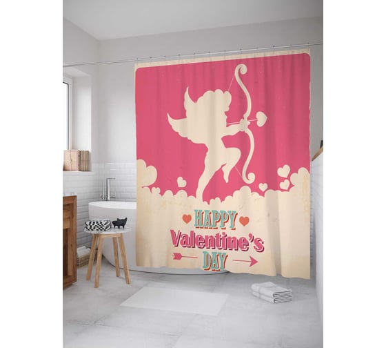 Сопутствующие товары для шторки-занавески JOYARTY Купидон с поздравлением из сатена, 180х200 см с крючками