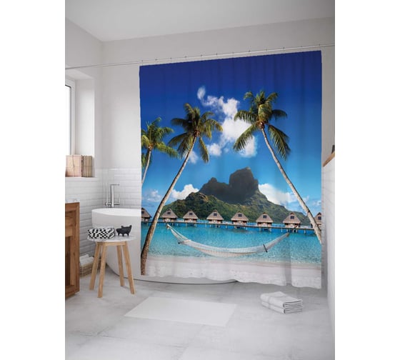 Штора (занавеска) для ванной JoyArty "Курортная спальня" из сатена, 180х200 см с крючками, sc_2612