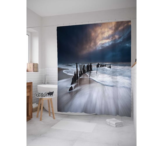 Штора (занавеска) для ванной JoyArty "Куски затонувшего корабля" из сатена, 180х200 см с крючками, sc_20541