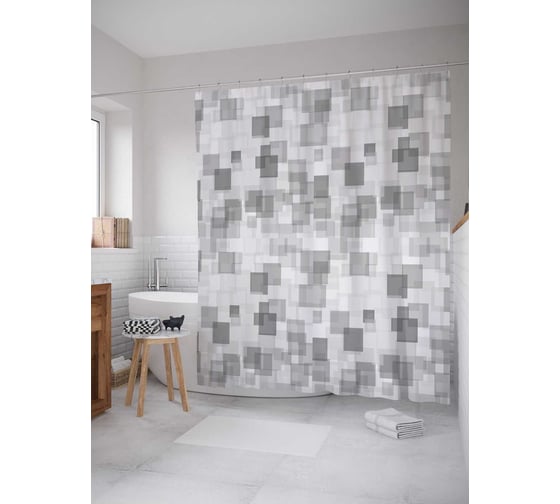 Штора (занавеска) для ванной JoyArty "Квадратные туманы" из сатена, 180х200 см с крючками, sc_20890