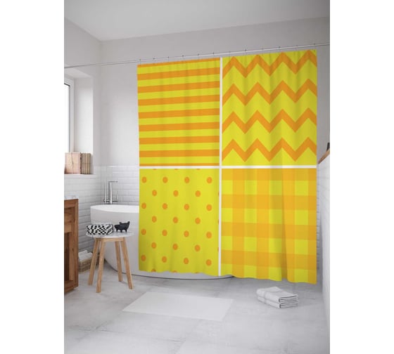 Штора (занавеска) для ванной JoyArty "Квадраты с узорами" из сатена, 180х200 см с крючками, sc_13431