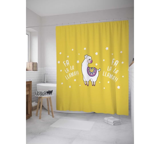 Штора (занавеска) для ванной JoyArty "Ла-ла-лама" из сатена, 180х200 см sc_378501