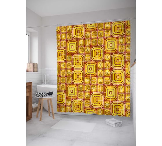 Штора (занавеска) для ванной JoyArty "Лабиринт" из сатена, 180х200 см с крючками, sc_30960