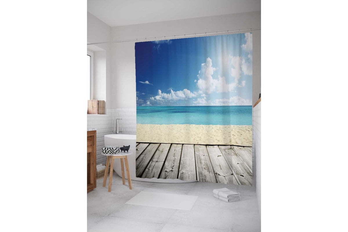 Штора (занавеска) для ванной JoyArty "Лазурное море и песок" из сатена, 180х200 см с крючками, sc_13827