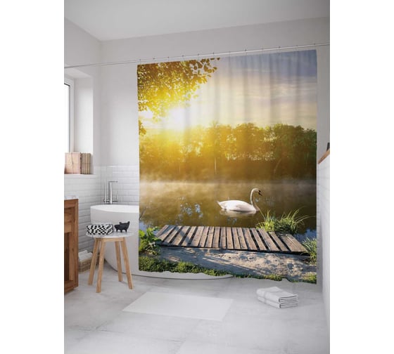 Штора (занавеска) для ванной JoyArty "Лебедь на прогулке" из сатена, 180х200 см с крючками, sc_18486