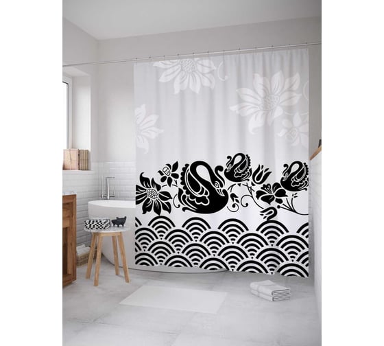 Штора (занавеска) для ванной JoyArty "Лебединый рай" из сатена, 180х200 см с крючками, sc_19061