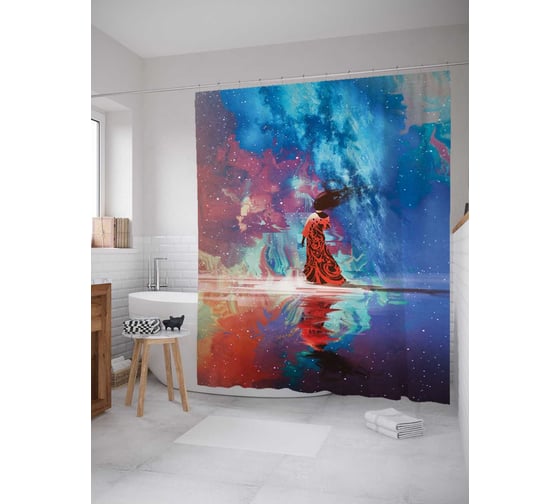 Штора (занавеска) для ванной JoyArty "Леди с озера" из сатена, 180х200 см с крючками, sc_23048