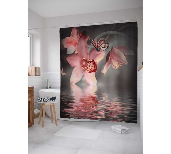 Штора (занавеска) для ванной JoyArty "Легенда о цветке" из сатена, 180х200 см с крючками, sc_2759