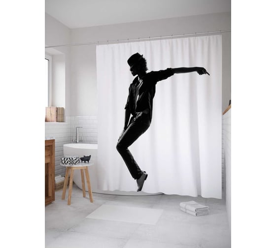 Штора (занавеска) для ванной JoyArty "Легендарный музыкант" из сатена, 180х200 см с крючками, sc_37508
