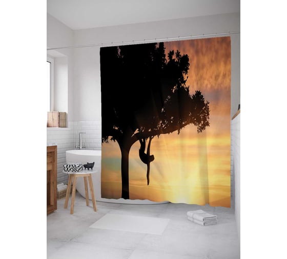 Штора (занавеска) для ванной JoyArty "Ленивец оттягивается" из сатена, 180х200 см с крючками, sc_37859