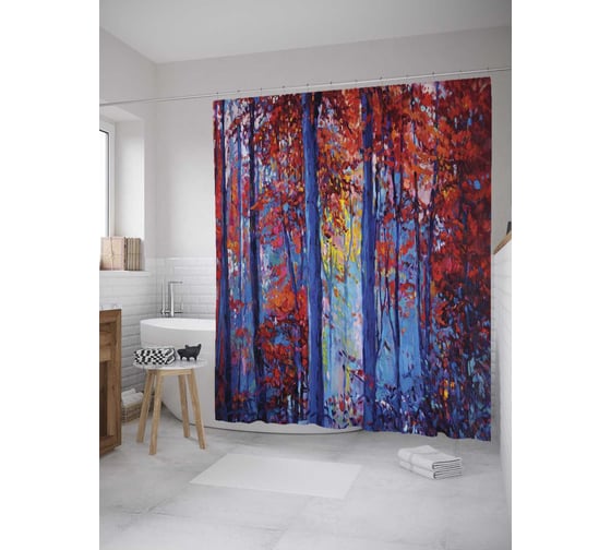 Штора (занавеска) для ванной JoyArty "Лес грехов" из сатена, 180х200 см с крючками, sc_9253
