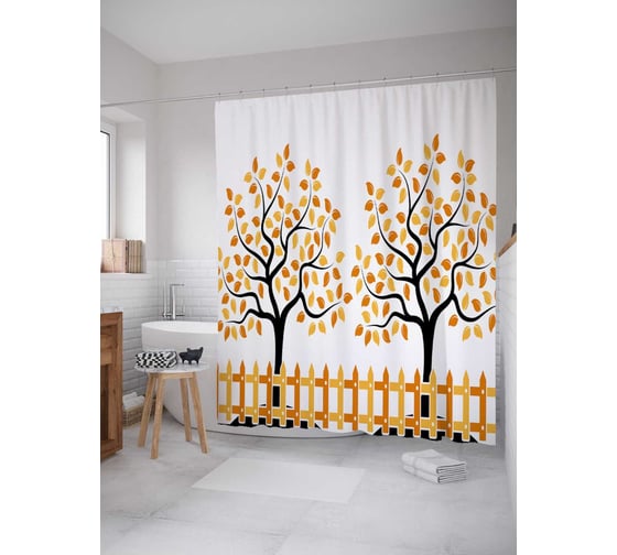 Штора (занавеска) для ванной JoyArty "Лес за забором" из сатена, 180х200 см с крючками, sc_21630