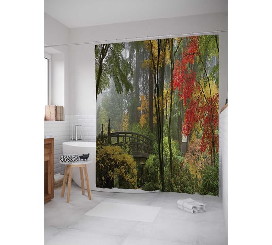 Штора (занавеска) для ванной JoyArty "Лесная радость" из сатена, 180х200 см с крючками, sc_10412