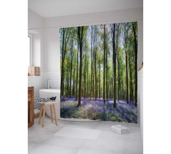 Штора (занавеска) для ванной JoyArty "Лесная свежесть" из сатена, 180х200 см с крючками, sc_12592