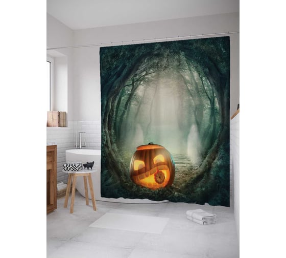Штора (занавеска) для ванной JoyArty "Лесная тыковка" из сатена, 180х200 см с крючками, sc_19406