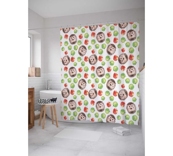Штора (занавеска) для ванной JoyArty "Лесной аппетит" из сатена, 180х200 см с крючками, sc_52741