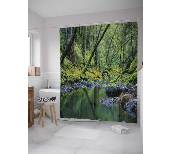 Штора (занавеска) для ванной JoyArty "Лесной берег" из сатена, 180х200 см с крючками, sc_8612
