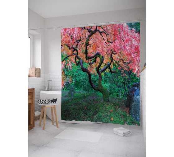 Штора (занавеска) для ванной JoyArty "Лесной фейерверк" из сатена, 180х200 см с крючками, sc_17885