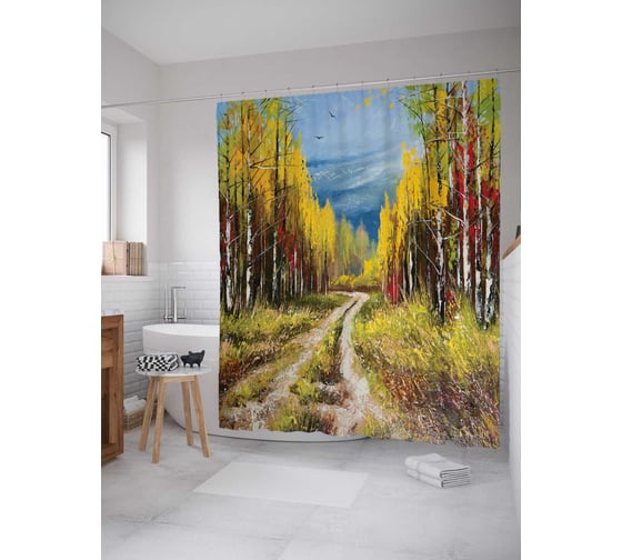 Штора (занавеска) для ванной JoyArty "Лесной маршрут" из сатена, 180х200 см с крючками, sc_15113
