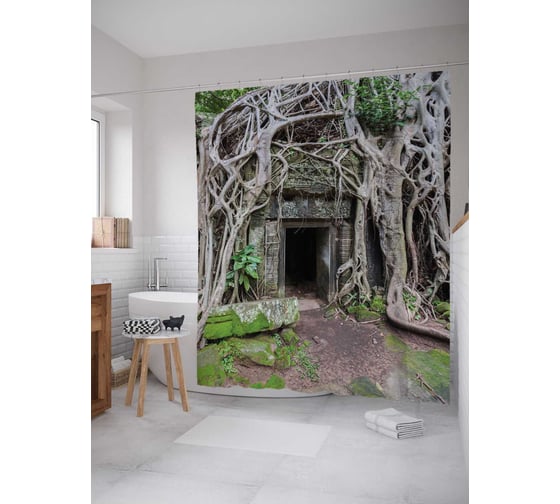 Штора (занавеска) для ванной JoyArty "Лесной подвал" из сатена, 180х200 см с крючками, sc_4145