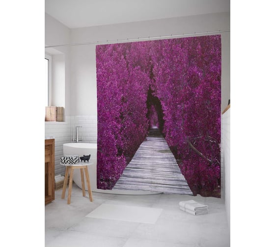 Штора (занавеска) для ванной JoyArty "Лесной тоннель" из сатена, 180х200 см с крючками, sc_8233