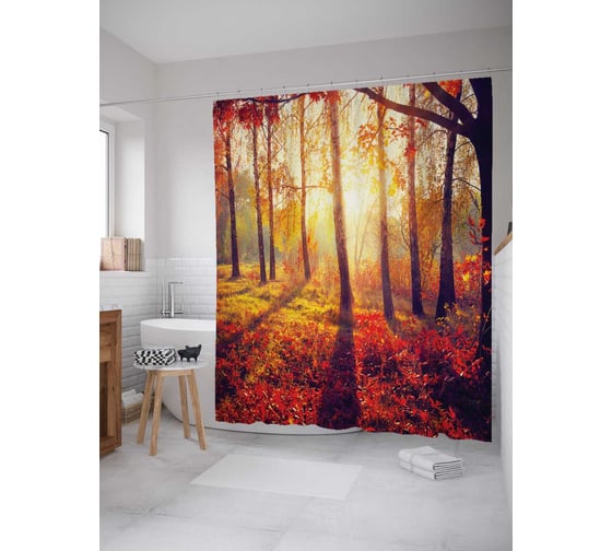 Сопутствующие товары для шторки-занавески JOYARTY Лесные краски из сатена, 180х200 см с крючками
