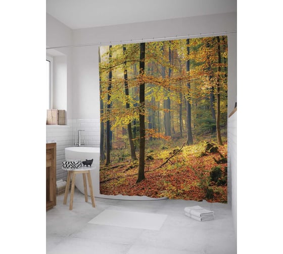 Штора (занавеска) для ванной JoyArty "Лесные прятки" из сатена, 180х200 см с крючками, sc_9339