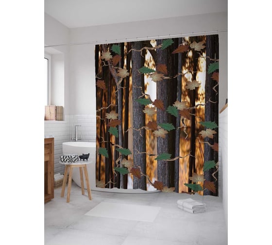 Штора (занавеска) для ванной JoyArty "Лесные ростки" из сатена, 180х200 см с крючками, sc_6927
