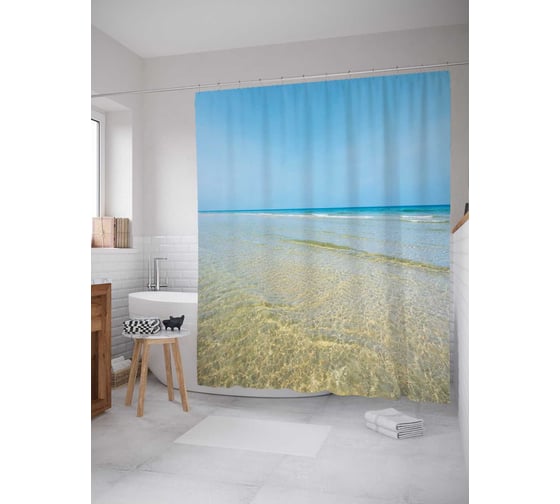 Штора (занавеска) для ванной JoyArty "Летний бриз" из сатена, 180х200 см с крючками, sc_13983
