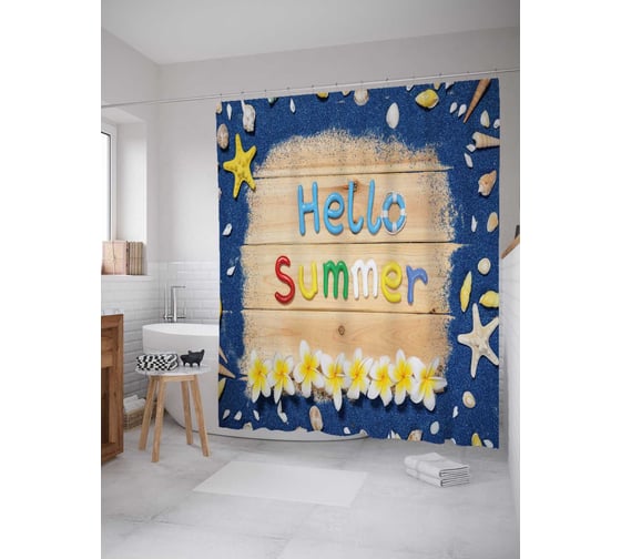 Штора (занавеска) для ванной JoyArty "Лето, привет" из сатена, 180х200 см с крючками, sc_29002