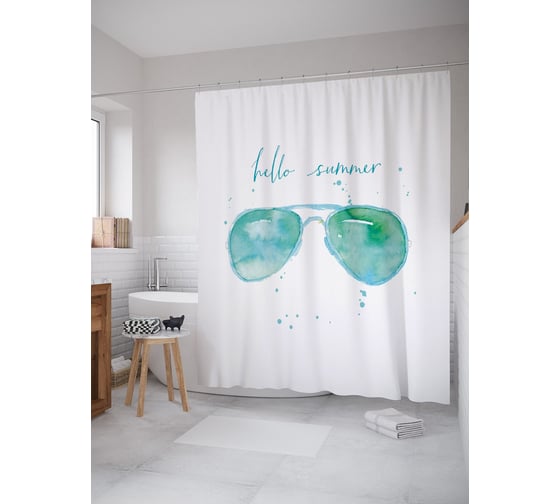 Штора (занавеска) для ванной JoyArty "Лето в очках" из сатена, 180х200 см с крючками, sc_53753