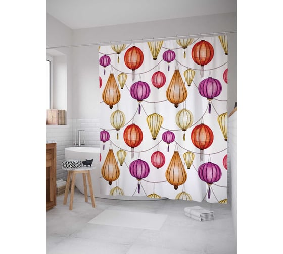 Штора (занавеска) для ванной JoyArty "Летящий свет" из сатена, 180х200 см с крючками, sc_13136