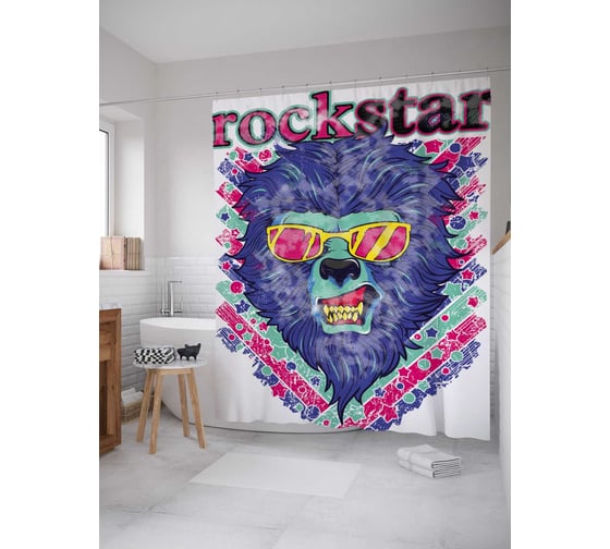 Штора (занавеска) для ванной JoyArty "Лев рок-звезда" из сатена, 180х200 см с крючками, sc_43077